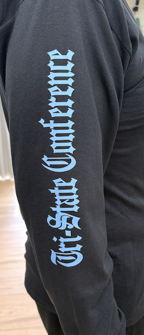 Black t-shirt with Blue printing, great quality long-sleeved t-shirt. A limited-time offering.